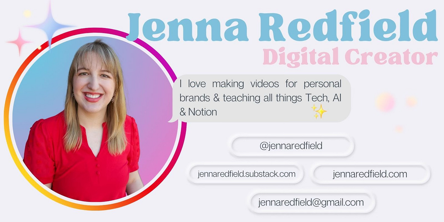 I’m Jenna Redfield — a videographer + personal branding strategist who helps entrepreneurs show up on camera with confidence and look as legit as they are.